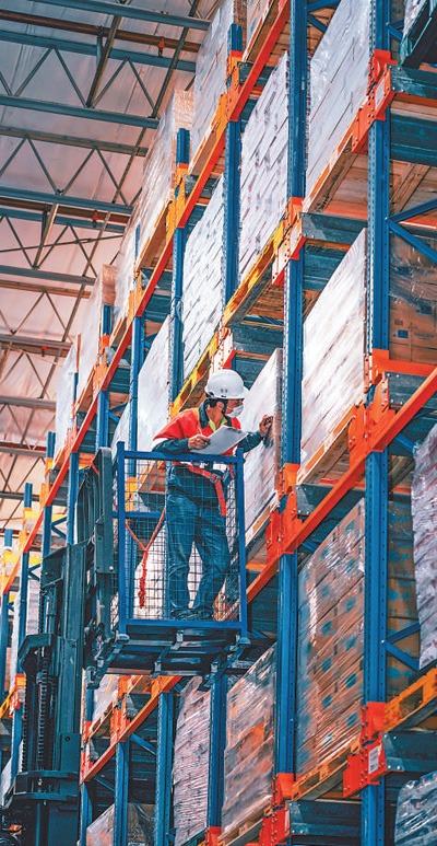 4月15日,广东省广州市的中外运物流华南有限公司仓库,工人在盘库。 邱新生摄(影像中国)