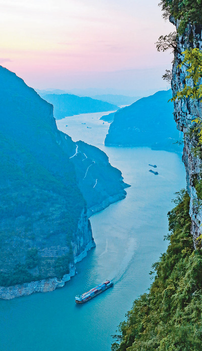 4月25日,船舶行驶在长江三峡湖北省宜昌市秭归县西陵峡江段。 王 罡摄(影像中国)