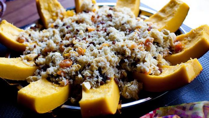 亚美尼亚传统南瓜饭(Ghapama),是一种秋季菜肴,在南瓜按个人喜好,加入米饭、坚果、葡萄干、杏子和其他配料,是典型的亚美尼亚烹饪法。