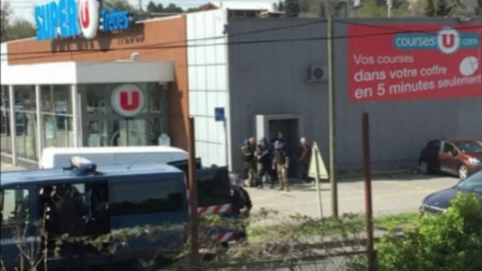 据称,这名驾车男子在袭击警员后,便前往特雷贝的“Super U”超市,在那里劫持了8名人质,时间为当地上午约11点钟。