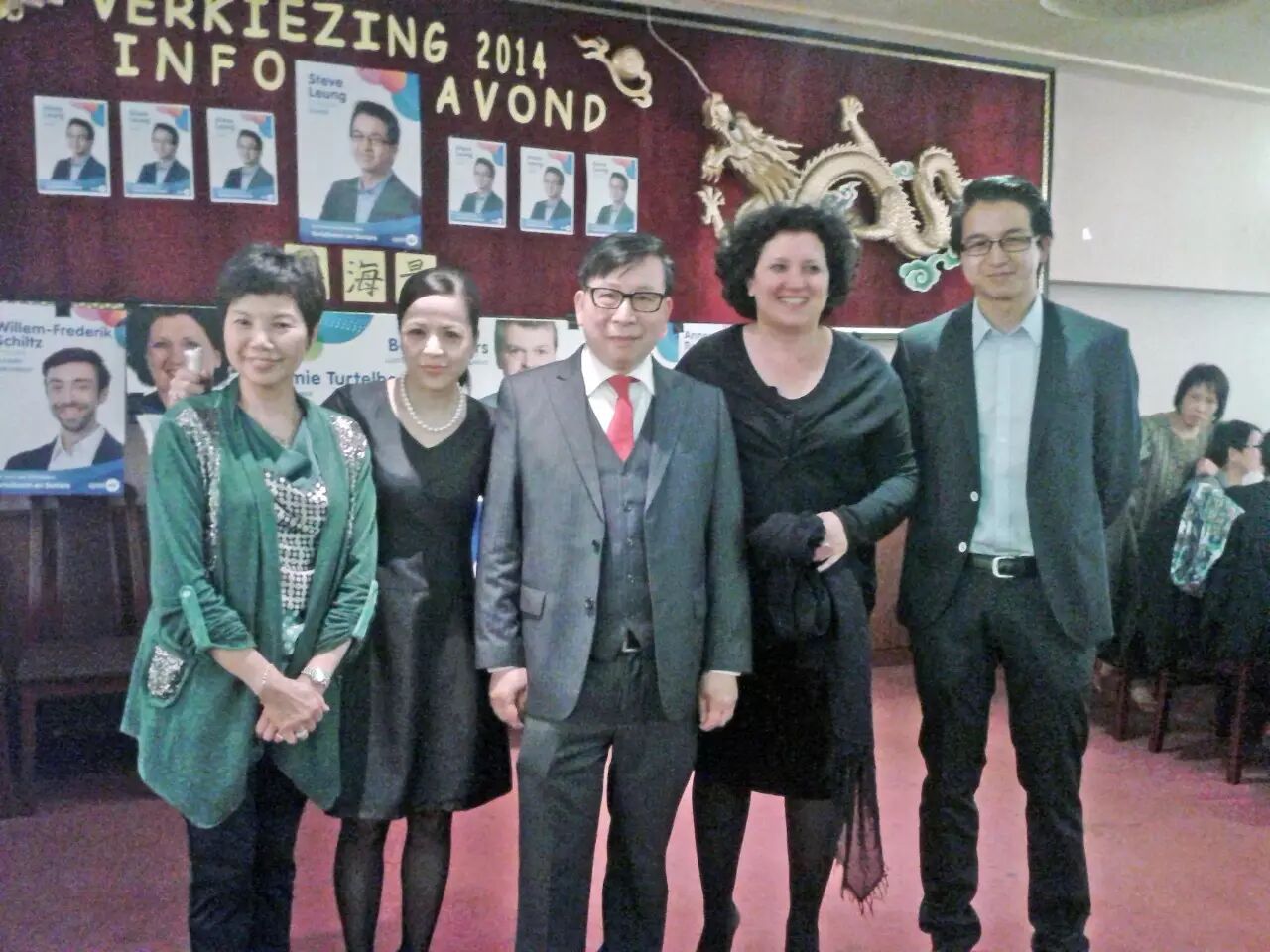 Annemie Turtelboom女士一直以来都和华人社区联系紧密,关注支持华人社区的各项活动,图为2014年大选前亲自为安特卫普华裔竞选者梁海量拉票站台!