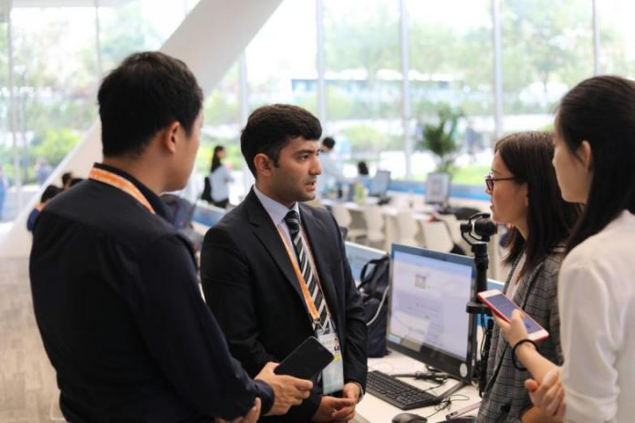 塔吉克斯坦“扎洪纳莫”国家电视台记者海达尔佐达·阿克马尔接受记者采访