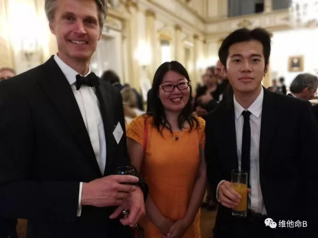 iTQi主管 Eric de Spoelberch先生与比利时维他命文化传媒负责人刘杨女士,实习记者赖志航在典礼酒会上