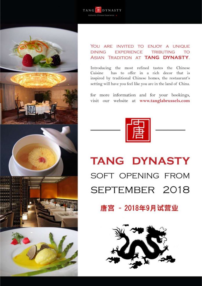 The most exquisite Chinese cuisine of Brussels, at the great expectation of everyone—–《Tang Dynasty》 —- Tangla Hoel Brussels high-end Chinese Restaurant has started its trial Soft Opening today !