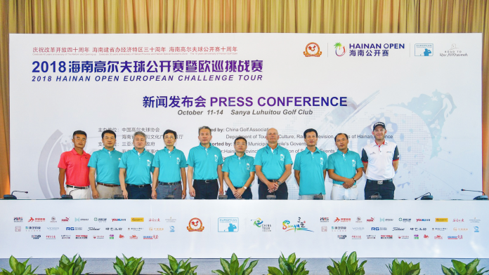 中国高尔夫球协会秘书长庞政,海南省旅游和文化广电体育厅群体处负责人麦有旺,三亚市人民政府副秘书长鄂立彬,欧巡挑战巡回赛海南公开赛赛事总监马茨-兰纳(Mats Lanner),海南省体育赛事中心主任张华,海南省高尔夫球协会常务副秘书长高武忠,阿里体育副总裁、海南体育赛事有限公司总经理张祖坤,海南省高协副秘书长、三亚鹿回头高尔夫球会总经理戴玉应出席了今天在三亚鹿回头高尔夫球会举行的盛大新闻发布会,启动了2018海南高尔夫球公开赛暨欧巡挑战赛。