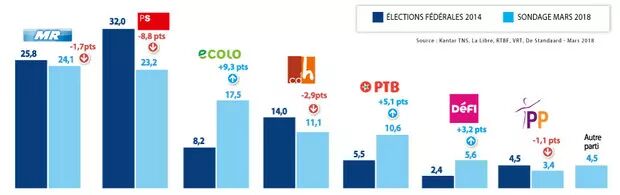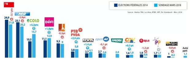 2017年10月,PTB票数“飞起”(6%)。毫无疑问,社会党选民可能对Samusocial案感到厌恶,但在宣布投票赞成PTB后又重新回到了议会。同样, Gial这个IT园以非盈利组织的名义成立,对PS没有任何负面影响。总之,如果他要在下一个立法机构中取得10%左右的票数增长,PTB压力不会太大,激励机制还会发挥积极作用。