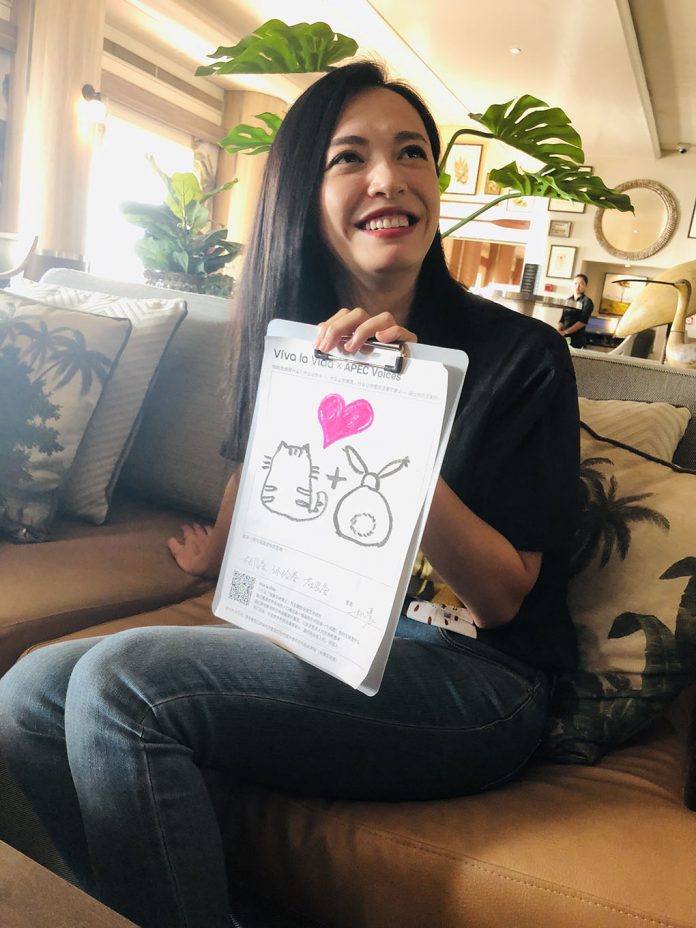 海外网11月17日电 “猫和兔子在一起也可以产生强大的爱”,16日,首次担任APEC青年大使的姚晨向海外网展示了自己的画作,而画中的猫和兔子正是代表着来自不同国家的青年们。姚晨说,“他们有不同的肤色、文化、语言,但是只要他们的力量融合在一起,就可以一起改变世界”。