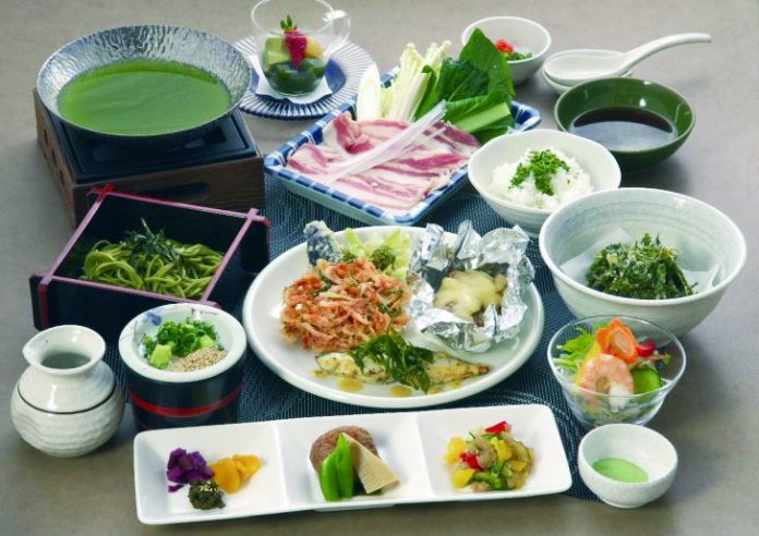 近年来,日本喝茶的人数在减少,加上来自中国等产茶大国的冲击,静冈绿茶的销路远不如前,静冈人不得不调整思路,在开发抹茶等更受年轻一代欢迎的饮品的同时,加大对茶产业的潜力深挖。静冈县对茶的开发可谓淋漓尽致:不仅由县政府文化观光部牵头推出了各种“茶都之旅”观光路线,静冈市还组织绘制了“茶巡游地图”,将当地主要茶庄、茶厂和茶吧标注出来,并安排专门的公交线路。与日本其他地方供应免费饮水不同,静冈的高速公路服务区和商超综合体的用餐区供应的免费饮品是抹茶饮。从机场、旅馆到超市便利店,茶做的各种特色食品、饮品和纪念品琳琅满目,游客还可以亲自进入茶园体验采摘,品尝一道道与茶有关的茶料理(如上图)……