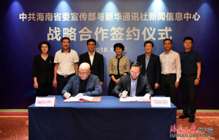 南海网、南海网客户端海口12月3日消息(南海网记者 庄晓珊)12月3日,海南省委宣传部与新华社新闻信息中心在海口签署协议,双方就海南省国际传播能力建设达成战略合作。