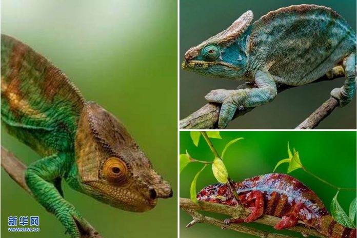 变色龙是一种“善变”的树栖爬行类动物,皮肤的颜色会随周围环境而变化,巧妙隐形于自然之中。变色龙现存约有160个种类,主要分布在非洲大陆和马达加斯加岛,其中有60余种是马达加斯加所独有的。