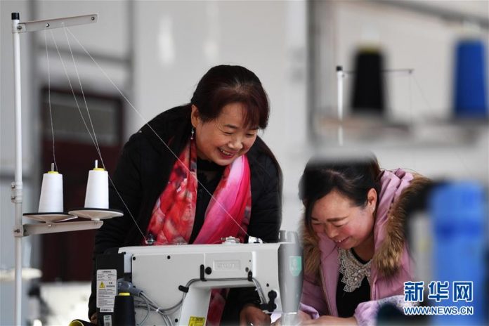 资料图:甘肃渭源县上湾镇“巾帼扶贫车间”。 新华社记者 陈斌 摄