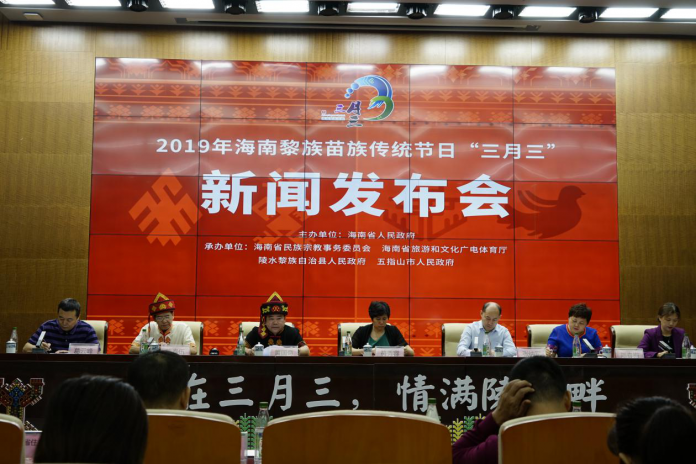 3月20日上午,2019年海南黎族苗族传统节日“三月三”活动新闻发布会在海口市海南省博物馆举行。记者从新闻发布会了解到,今年的“三月三”以“爱与感恩”为主题,主会场活动将于4月6日至4月9日在陵水黎族自治县和五指山市举办,此外,海南13个市县也将举办丰富多彩的分会场活动。
