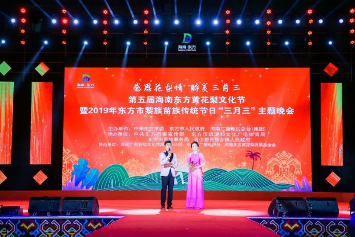 4月7日晚,由东方市委市政府、海南广播电视总台(集团)联合主办的第五届海南东方黄花梨文化节暨2019年东方市黎族苗族传统节日“三月三”活动主题文艺晚会在东方市民休闲广场精彩上演。