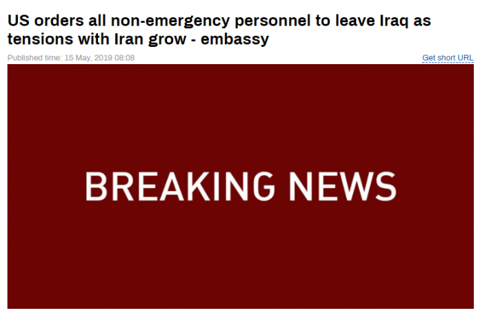 海外网5月15日电 据今日俄罗斯网站消息,美国驻伊拉克大使馆15日表示,因局势日益紧张,美国政府已下令从伊拉克撤出“非紧急”工作人员。俄媒称,这是美国与伊朗关系日益紧张后采取的最新行动。