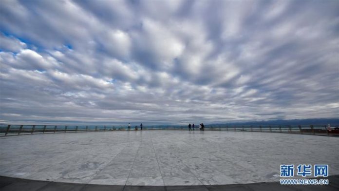 (来源:新华网)7月18日,游客在茶卡盐湖一处观景台上游览。