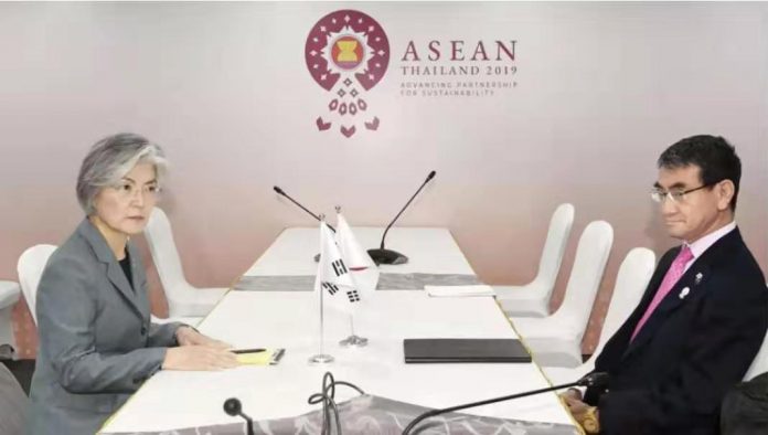 有多不待见?看看这两天,在曼谷举行的东盟外长会期间,日本外相河野太郎、韩国外长康京和在会谈中的表情,就知道了。