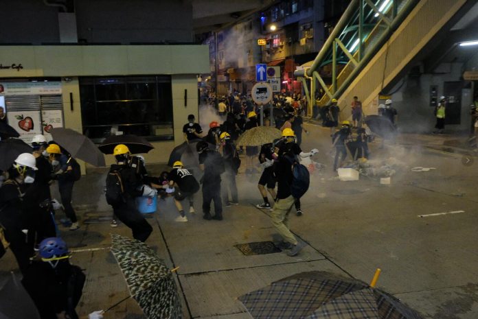 暴徒冲击深水埗警署,警方施放催泪弹(来源:港媒)