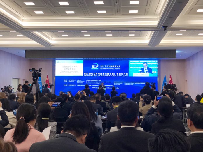 10月24日,首届可持续发展论坛在京召开。国家主席习近平致贺信指出,中国秉持创新、协调、绿色、开放、共享的发展理念,推动中国经济高质量发展,全面深入落实2030年可持续发展议程。中国积极深化南南合作,推动共建“一带一路”同2030年可持续发展议程深入对接,为全球实现可持续发展目标作出积极贡献。