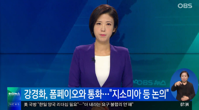 韩国外交部长官康京和与美国国务卿蓬佩奥(OBS新闻)