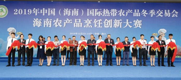 【香港流动新闻讯】(记者:吴欣 海口报道)蜜柚汁文昌鸡、金庄龙虾球葫芦、牛大力鲍鱼、百香果排骨、糟粕醋煮海鲜、时尚琼式片皮鹅……12月13日上午,由海南省总工会主办,海南省财贸旅游烟草工会、海南省酒店与餐饮行业协会、海南省酒店与餐饮行业工会联合会承办,各市县总工会、餐饮烹饪协会等单位协办的“2019年冬交会海南农产品烹饪创新大赛”在海南国际会展中心隆重开赛。省内酒店餐饮企业负责人、参展企业、参赛选手、媒体代表等500多人出席了当天的开赛仪式。