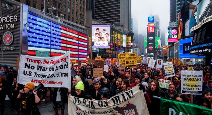 据俄罗斯卫星通讯社9日消息,当地时间周三,反战者在美国各地游行示威,抗议美国与伊朗的进一步冲突,以及对伊拉克主权的侵犯。“粉红代码”、“ANSWER”(“立即停止战争和种族主义联盟”)等反战组织人员聚集在白宫前,呼吁大家“畅所欲言”,参与者和路人均可以就美国在中东问题上的做法,表达自己的态度。