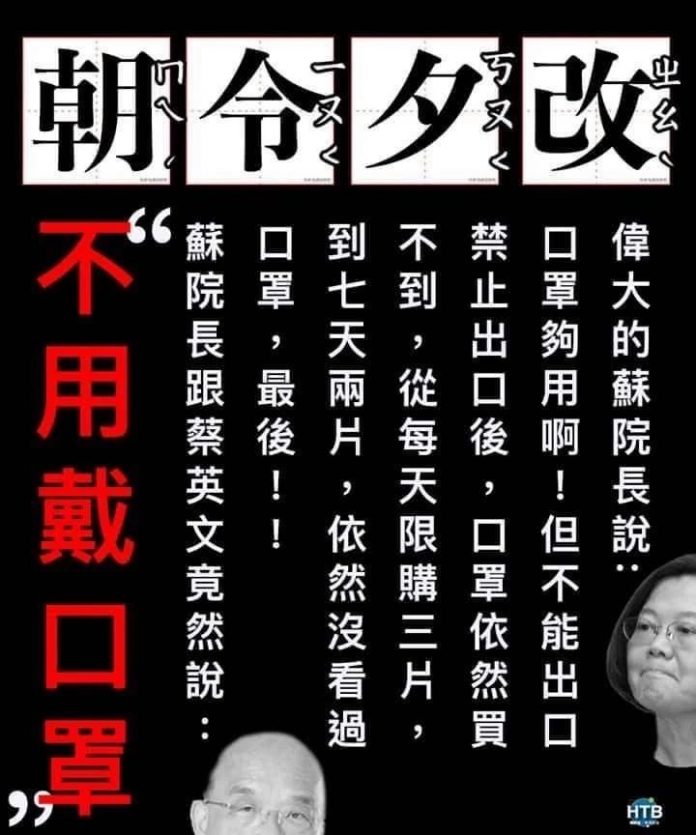 港台腔:只问政治不顾苍生,民进党酿口罩之乱