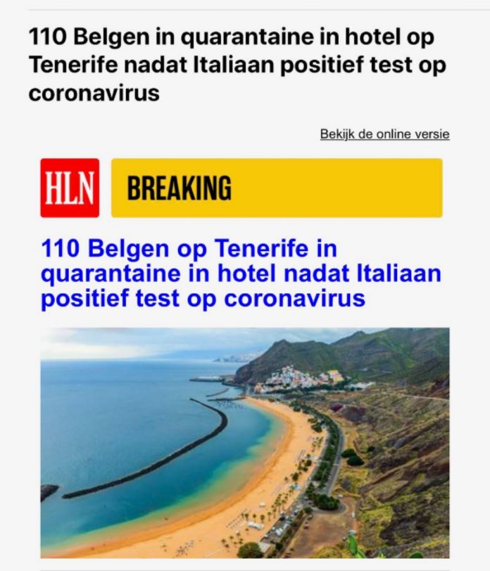 110名比利时游客被限制在特内里费岛(西班牙)一家酒店的房间里