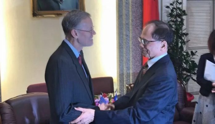 台湾立法机构负责人游锡堃与美国在台协会处长郦英杰见面。(图源:“自由时报”)