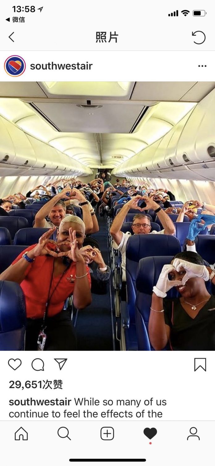 西南航空公司在发布照片时还配文:这些勇敢的灵魂在巨大风险和危机暴露之下依然勇敢前行,不断将他人需要置于自己需要之上。他们的无私牺牲在这个时代是一盏明灯,任何感激和赞美都是不够的。由于他们的勇气,我们的家人、朋友、同事、邻居,以及更多的人才有了奋斗的机会。