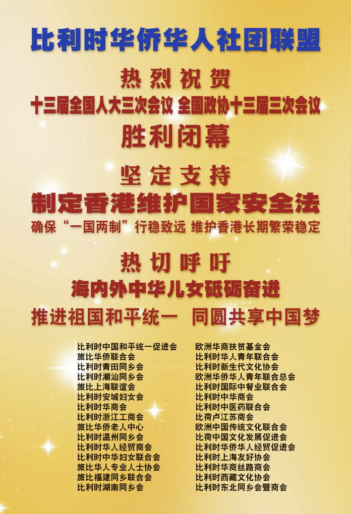 比利时华侨华人社团联盟支持制定香港维护国家安全法