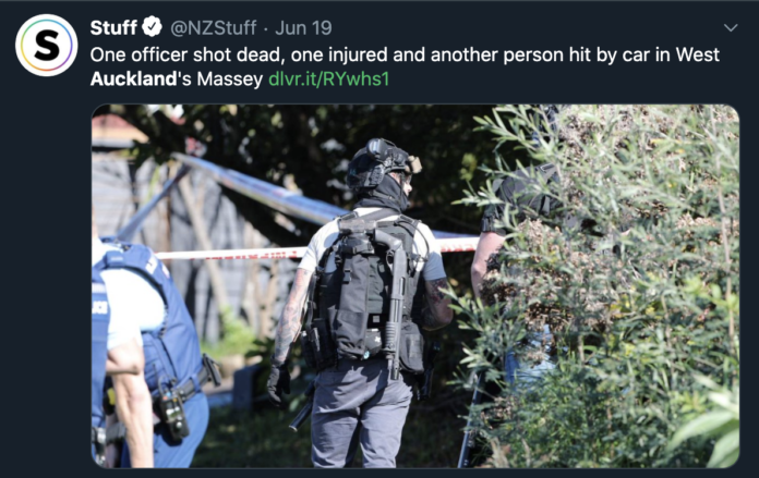 海聚推荐新西兰奥克兰突发枪击案 造成一名警察死亡 19 6 月, 2020海外网6月19日电 据新西兰“stuff”新闻网站19日报道,当地时间19日上午10点半,新西兰西奥克兰发生枪击事件,两名罪犯乘坐一辆车辆向警察开枪后逃逸,造成一名警官死亡,一名警官腿部受枪伤,一位路人被汽车撞伤,目前警方已经封锁了事发区域,并正在全力追捕犯罪人员。本文系版权作品,未经授权严禁转载。海外视野,中国立场,浏览人民日报海外版官网——海外网www.haiwainet.cn或“海客”客户端,领先一步获取权威资讯。