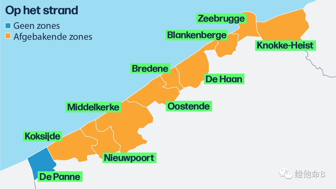 除De Panne外,所有海滩都划分了不同区域,并配有工作人员以确保游客足够分散(见下图)。