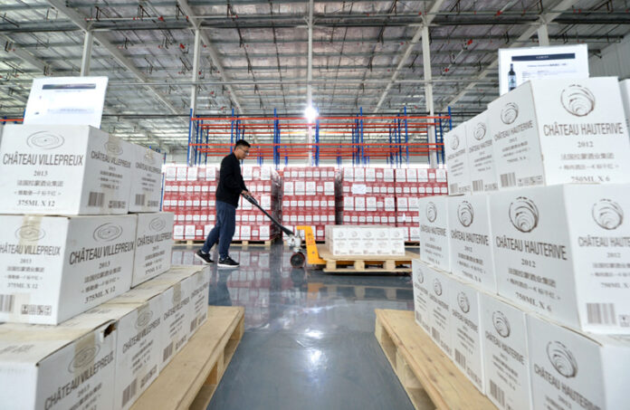 工作人员在青岛保税港区邯郸(鸡泽)功能区搬运货物。新华社记者 王晓 摄