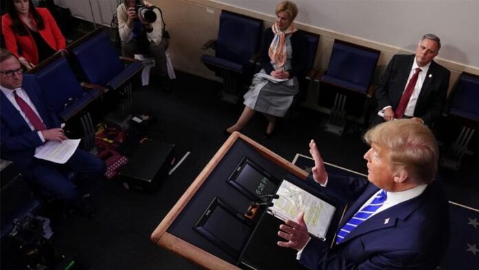 《华盛顿邮报》在题为《特朗普举办例行简报会时的支持率更高,但这其实与简报会无关》的文章中表示,白宫试图以新一轮疫情简报会挽救特朗普的民意支持率,他本人在宣布这一消息时,也拿自己最看重的指标——收视率开了头。“我们过去的简报会很成功。”他说道,“都是我主持的,而且有很多人看,创造了收视记录。在有线电视的历史上,还没有这种事发生。”