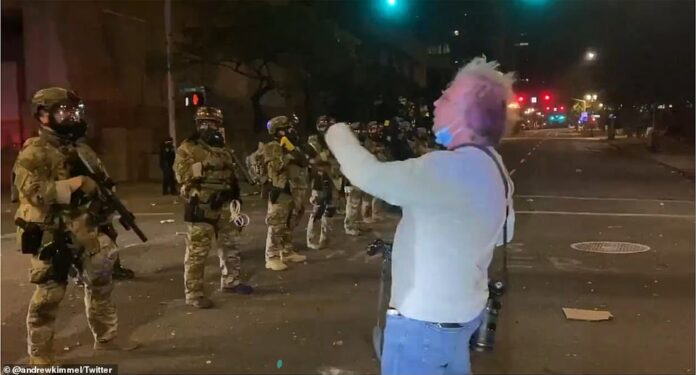 据《每日邮报》报道,26日早些时候,约有5000名波特兰抗议者冲破了当地联邦法院周围的护栏,随后与执法人员发生冲突,后者以催泪弹、胡椒喷雾和橡胶子弹等装备试图控制人群。在附近,这位名叫麦克·哈斯蒂的男子正在责备联邦执法人员的不当行为。