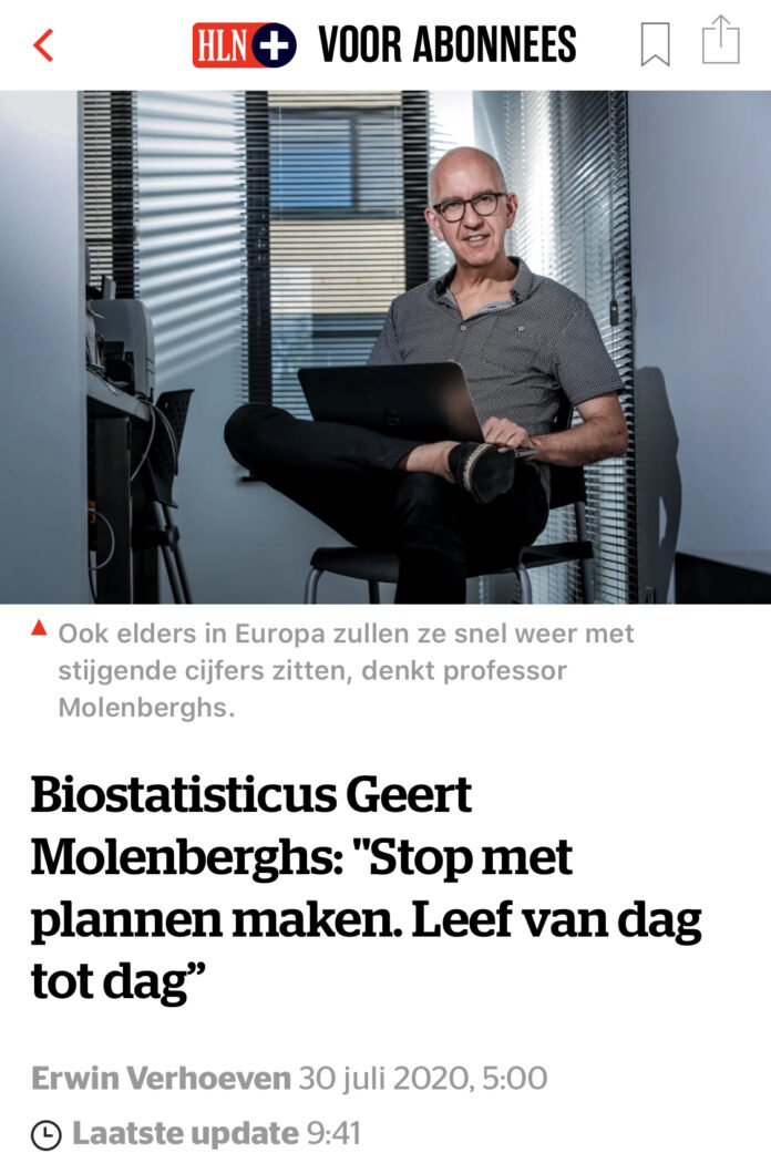 (本平台综合报道)今早荷兰语”小报“HLN刊出一篇比利时生物学家的采访,用了半悲观的题目:不要计划了,活一天是一天!Geert Molenberghs先生一向敢说敢言,他的意思是,根据目前世界范围内的病毒反弹,随着各个年龄段(之前是老人高发,现在则是年轻人居多)被感染人数的增加(包括近期老人感染也在上升),我们还是管好自己,享受当下吧,因为真的是计划没有变化快。