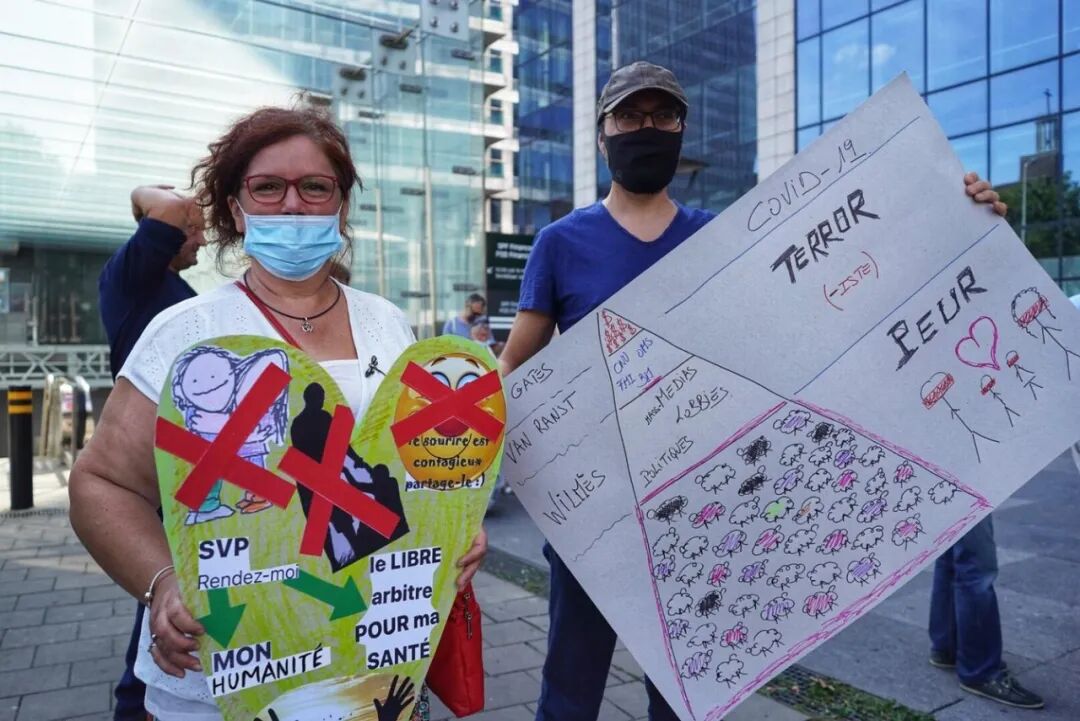 此次抗疫是由Viruswaanzin组织的,这个团体同时也反对荷兰的抗疫措施,控诉比利时、比尔盖茨以及英国流行病学家尼尔·弗格森。