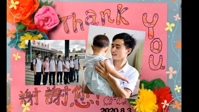综合香港东网等媒体26日报道,香港正值抗疫关键时刻,早前内地派出7名核酸检测支援队先遣队员赴港一同抗疫。得悉这个消息,不少香港市民十分受鼓舞,用漫画及手写留言的形式绘制成一张张心意卡,向赴港内地医护表达支持和谢意。还有细心的市民特地搜集了先遣队员的照片,绘制成7人的漫画肖像。有市民则将先遣队员描绘成七侠的形象,歌颂他们“拔刀相助”的侠骨义气。更有市民作了一首原创歌曲《逆行天使》,向他们致敬。