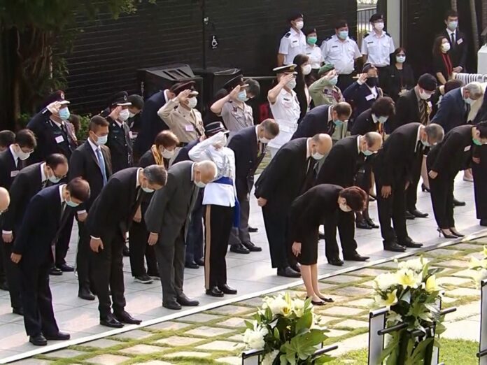 仪式在早上近8时许举行,行政长官林郑月娥在民政事务局局长徐英伟陪同下进场,现场先进行升国旗、奏国歌,警察步枪仪仗队随后鸣枪21响向英烈致敬。现场摆放多个纪念花圈,并举行升国旗及区旗仪式。多名军装警员在现场戒备,又封锁纪念花园外部分行人通道。