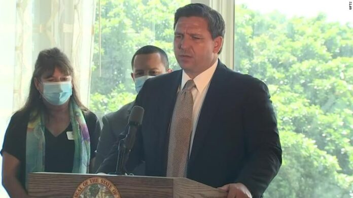 佛罗里达州长德桑蒂斯宣布该州彻底重开经济。(图截自ABC news画面)