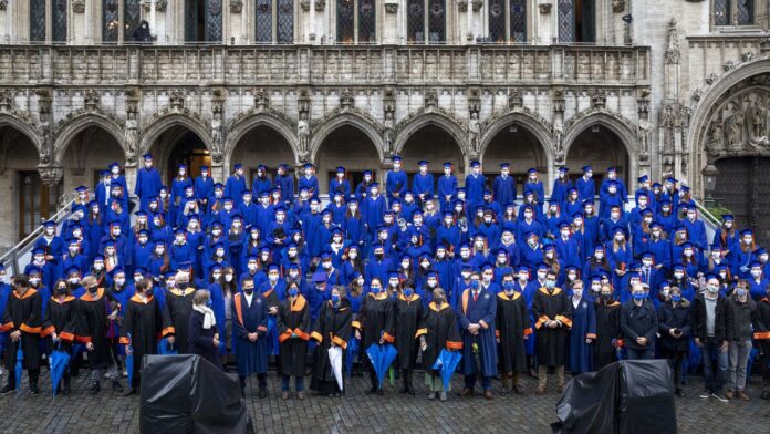 大约5000名VUB和ULB的学生身着蓝色的毕业礼服和他们的父母一起参加毕业典礼,蓝色将成为毕业典礼的主色调。