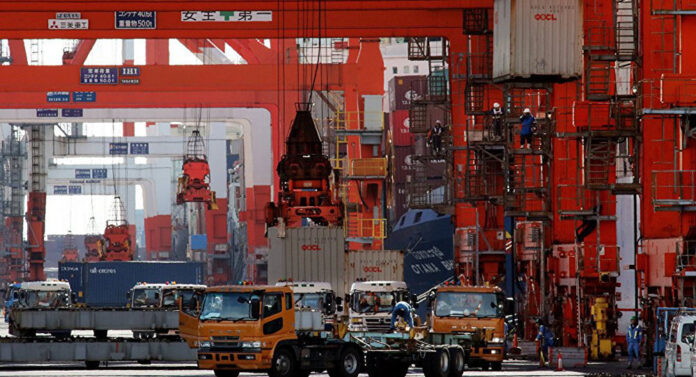 今年8月,日本一港口正在整理对华出口货物。 (图/AFP)