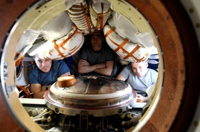 3名宇航员在“联盟MS-16”号飞船中。(NASA)