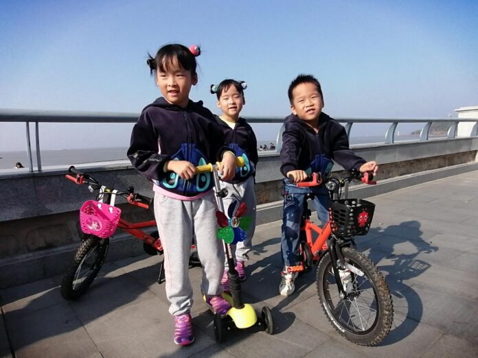 在五山玩耍的三胞胎姐弟(王西洛 摄)