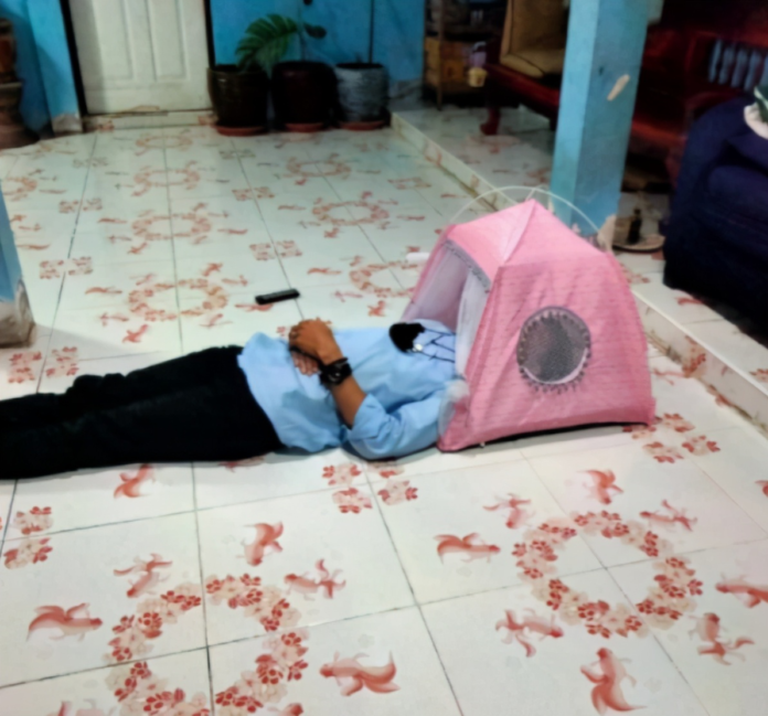 泰国——男子双十一图便宜买情侣帐篷,货到之后只能放下头