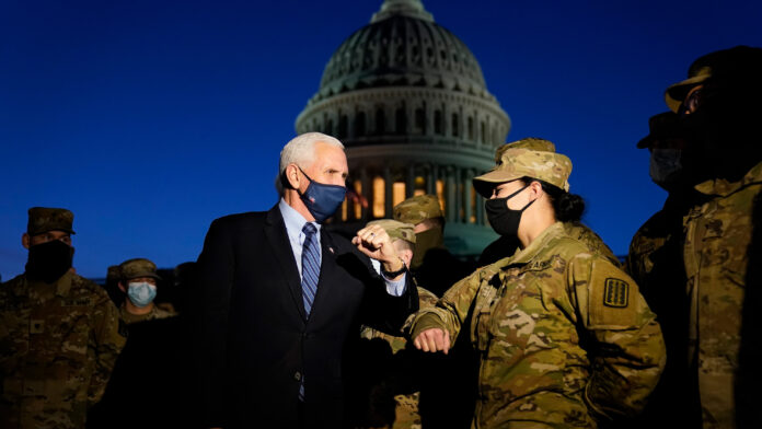 据《国会山报》报道,彭斯此次行程并非在计划之内,在对就职典礼正在采取的安全措施进行简要介绍后,他向国民警卫队人员表示感谢,并指示“要确保新总统和副总统的就职典礼和宣誓的安全。”