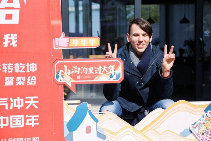 带着在百年私塾里亲手剪的六棱窗花,“小火车”在半山腰偶遇一位正在唱祝酒歌的小伙。受对方热情邀请,他即兴献唱《冰雪奇缘》中的歌谣《Do You Wanna Build A Snowman》(你想堆雪人吗),两人还共唱一曲美国魔力红乐队的《She Will Be Loved》(她将被爱),古村的新春顿时多了一份中西结合的年味。