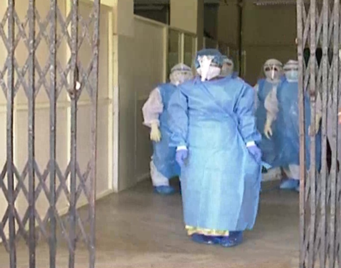 海外网4月26日电 据印度亚洲国际新闻社(ANI)25日报道,近日印度喀拉拉邦的一家医院内,举办了一场特殊的婚礼,新娘身穿全套防护衣,与感染新冠病毒的男友成亲。与全副武装的新娘不同,男子仅戴一层口罩,他还亲自给新娘戴上了项链。随后两人互相给对方戴上了绿色的花环。新闻曝光后,引发激烈争议。