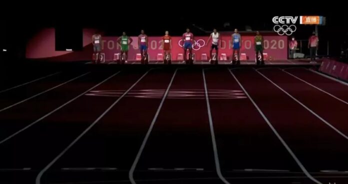 东京奥运会田径男子100米决赛现场(图源:央视新闻)