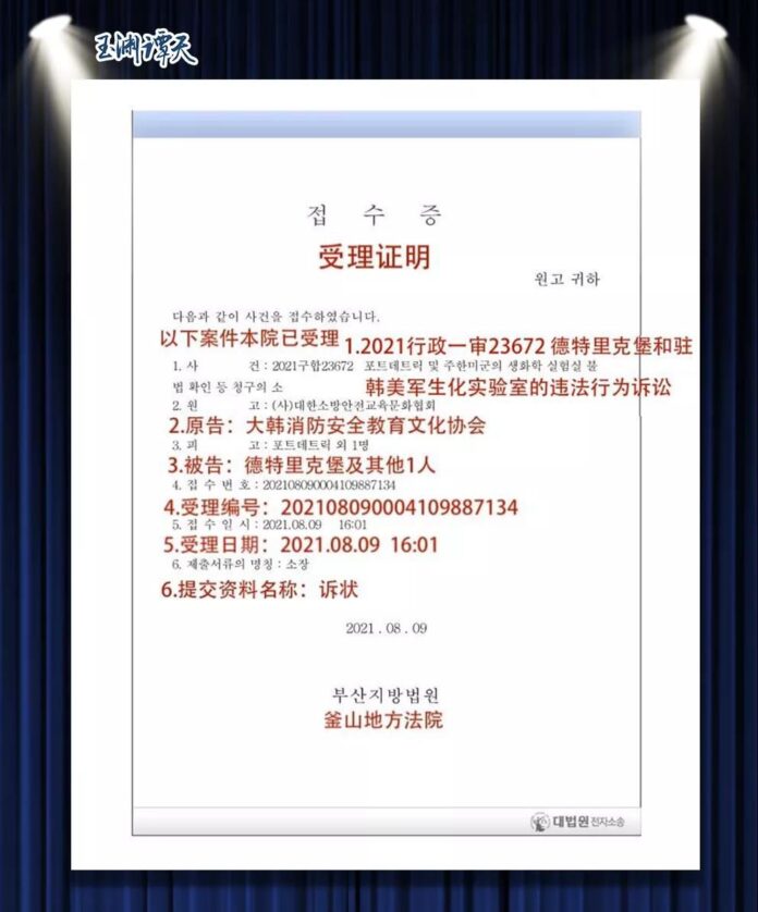 不久前,韩国大韩消防安全教育文化协会以“实验室非法活动”为由,将驻韩美军生化实验室和德特里克堡告上了釜山地方法院。